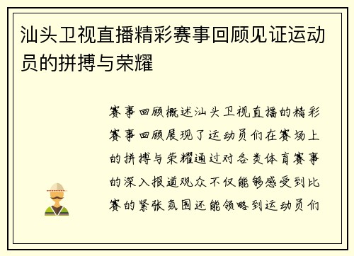 在当今社会,体育赛事不仅是竞技的舞台,更是人们情感的寄托和文化的体现。教育一台直播通过高质量的直播技术,将精彩的体育赛事瞬间呈现给观众,让每一个人都能感受到运动的魅力与激情。本文将从赛事直播的技术优势、观众互动体验、体育文化传播以及对青少年教育的影响四个方面进行详细阐述,展现教育一台直播如何带领观众领略体育的精彩瞬间。 1、赛事直播的技术优势 教育一台直播采用先进的直播技术,确保赛事画面的清晰度...